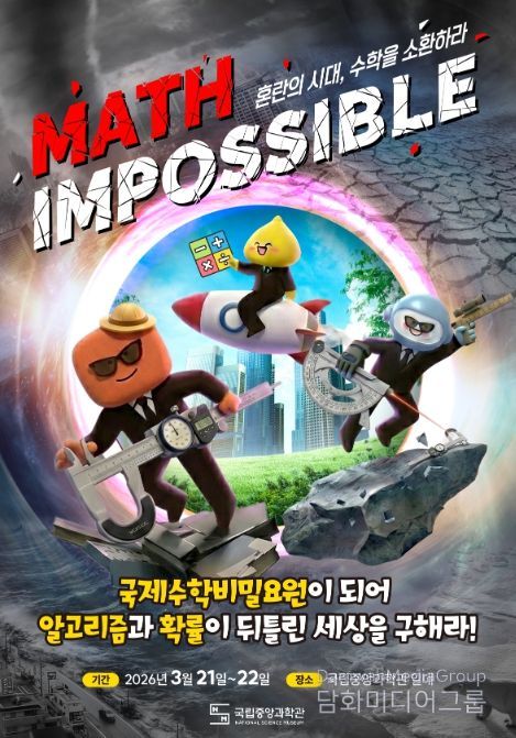 시민행정신문 이존영 기자 | 과학기술정보통신부 국립중앙과학관은 3월 21일부터 22일까지 양일간, 관람객이 주인공이 되어 수학적 사고로 위기를 극복하는 임무형(미션형) 수학 행사 ‘Math Impossible: 혼란의 시대, 수학을 소환하라!’를 개최한다.