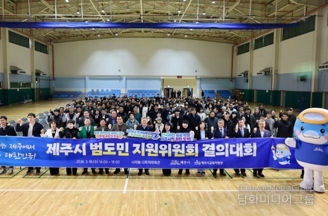 이번 결의대회에는 김완근 제주시장을 비롯해 제주시 범도민 지원위원회 위원 등 300여 명이 참석해 체전 준비 상황을 공유하고 시민 참여 분위기 확산에 뜻을 모았다.