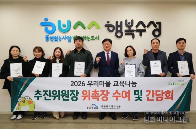 시민행정신문 강갑수 기자 | 대구 수성구는 지난 17일 구청에서 ‘2026년 우리마을 교육나눔 추진위원장 위촉장 수여 및 간담회’를 개최했다.