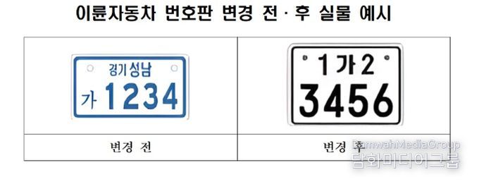 3월 20일 이후 신규 및 재등록 이륜자동차는 반드시 새 번호판을 부착해야 하며, 기존 소유자도 희망 시 교체가 가능하다.