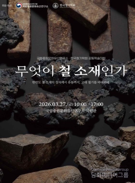 시민행정신문 이존영 기자 | 국가유산청 국립문화유산연구원 국립중원문화유산연구소는 한국철기학회와 함께 2026년 3월 27일 오전 10시 국립중원문화유산연구소 국원관에서『무엇이 철 소재인가?』를 주제로 공동 학술대회를 개최한다.