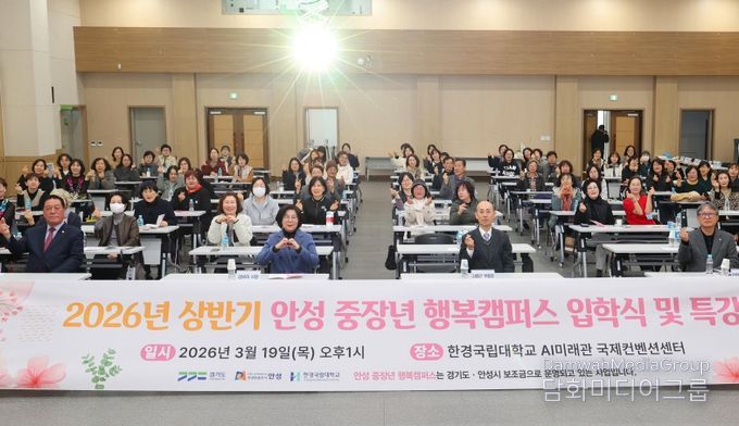 시민행정신문 기자 | 안성시는 3월 19일 오후 1시 한경국립대학교 미래융합기술연구센터 국제컨벤션센터에서 “2026년 안성 중장년 행복캠퍼스 상반기 정규과정 입학식을 성황리에 개최했다.