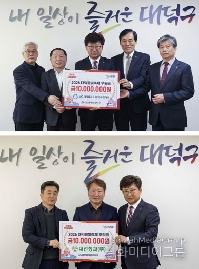 시민행정신문 강갑수 기자 | 대전 대덕구는 20일 MG새마을금고 대덕구협의회와 대전청과㈜로부터 ‘2026 대덕물빛축제’의 성공적인 개최를 위한 후원금 각각 1000만원을 전달받았다.