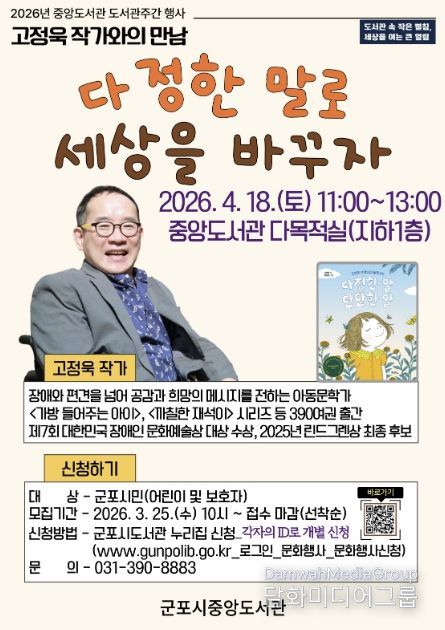 행사 관련 사항은 군포시도서관 누리집 공지사항에서 확인할 수 있으며, 참여 신청은 3월 25일부터 선착순으로 접수한다.
