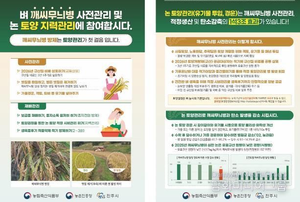 또한 규산과 유기물을 꾸준히 투입해 토양 지력을 높이고, 노후 논이나 모래질 논은 객토와 시비로 뿌리 활력을 확보해야 한다고 강조했다.