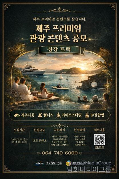 시민행정신문 기자 | 제주특별자치도와 제주관광공사(사장 고승철)는 오는 4월 14일까지 온라인 채널을 통해 제주관광의 질적 전환과 콘텐츠 경쟁력 강화를 위해 ‘트렌드 선도 프리미엄 관광 콘텐츠(성장 트랙)’ 공모 사업을 추진하고 있다고 25일 밝혔다.