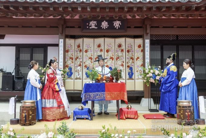 전통 혼례식은 ▲교배례(신랑·신부가 서로 맞절하며 부부의 연을 맺는 의식) ▲합근례(술잔을 나누며 하나 됨을 다짐하는 의식) ▲폐백(혼례 후 양가 어른께 인사를 올리는 의식) 등 고유의 절차를 현대적으로 간소화하면서 격식을 갖춰 진행된다. 특히 혼례 이후 펼쳐지는 풍물놀이 등 전통 연희가 잔치 분위기를 자아내 신랑 신부와 하객이 함께 즐기는 ’참여형 웨딩‘의 경험을 선사한다.