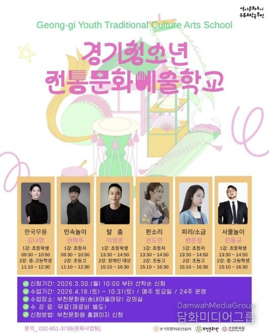 시민행정신문 강갑수 기자 | 부천문화원은 청소년들의 전통문화 참여 기회를 확대하고 경기지역 전통민속예술의 지속 가능한 전승 기반 마련을 위한 ‘2026 경기청소년전통문화예술학교’ 참여 학생을 모집한다.