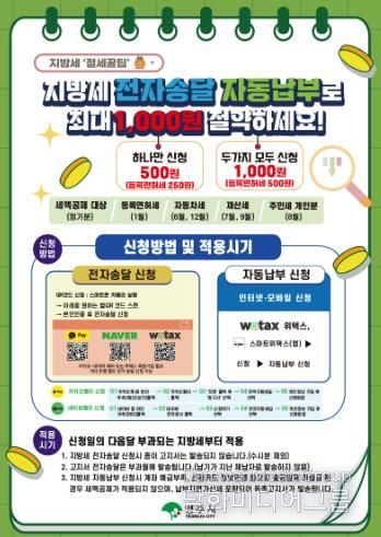 자동납부를 신청하면 건당 500원의 세액공제 혜택이 제공되며, 전자송달까지 함께 신청할 경우 추가로 500원이 공제돼 최대 1,000원의 절세 혜택을 받을 수 있다.
