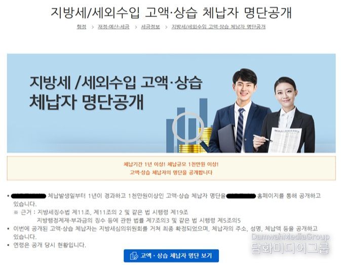 시는 명단공개와 함께 출국금지, 공공정보 등록 등 행정제재를 병행하여 체납액 징수 실효성을 강화할 계획이다.