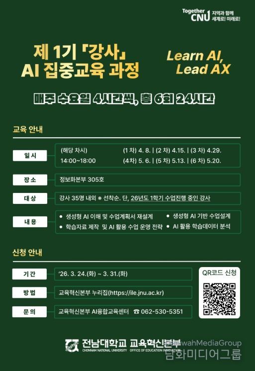 30일 전남대학교에 따르면, 교육혁신본부(본부장 정은경)는 ‘제1기 강사 AI 역량 강화 집중교육 과정’을 운영한다.