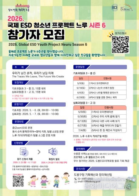 시민행정신문 강갑수 기자 | 서울 도봉구가 ‘국제 ESD 청소년 프로젝트 느루 시즌 6’를 진행한다.