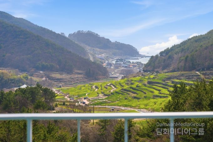 2층으로 올라서면 금산을 한 눈에 담을 수 있고, 또 반대편으로는 유채꽃이 만발한 파라다랑스와 두모 해변을 조망할 수 있다.