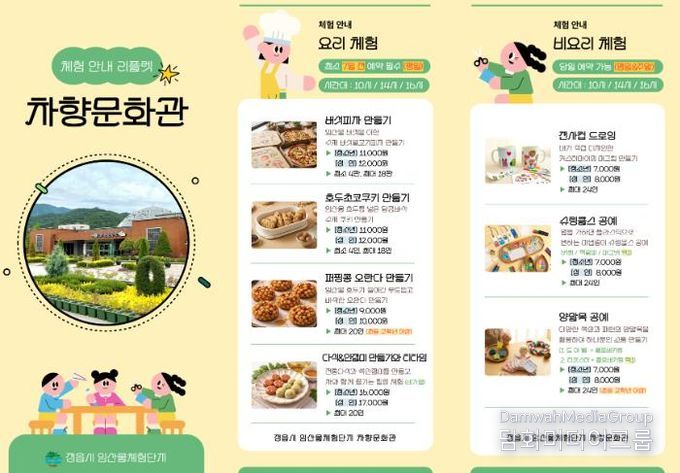 시 관계자는 “차향문화관 프로그램은 단순한 체험을 넘어 지역 임산물과 최신 문화 트렌드를 함께 경험할 수 있는 유익한 콘텐츠”라며 “앞으로도 알찬 프로그램 운영을 통해 신규 방문객 유입을 늘리고 지역 체험 관광 활성화에 힘쓰겠다”고 말했다.