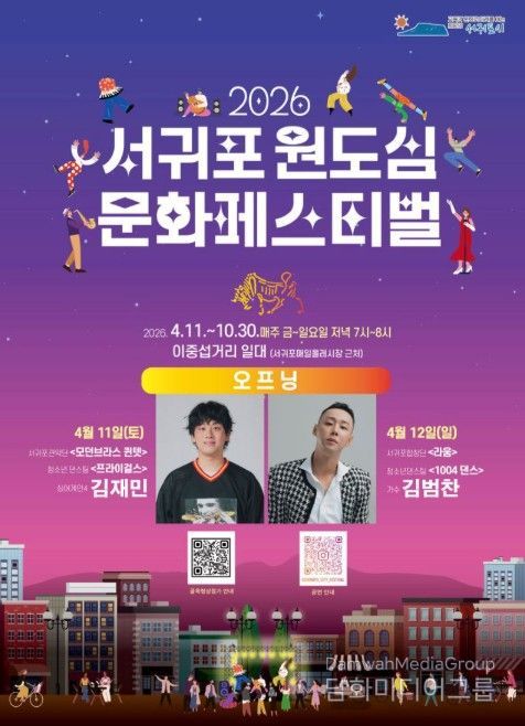 시민행정신문 기자 | 서귀포시는 올해 4월 11일부터 10월 30일까지 매주 금·토·일요일 저녁 7시에 이중섭로 일대에서 대표 상설 야간 문화행사인 `2026 서귀포 원도심 문화페스티벌'을 개최하여, 지역 예술인 및 청소년 동아리 공연 등 다채로운 볼거리를 선보일 예정이다.