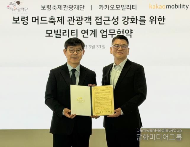 (재)보령축제관광재단은 31일 경기 성남시 판교 카카오모빌리티 본사에서 주식회사 카카오모빌리티와 ‘제29회 보령머드축제 관광 모빌리티 연계 서비스 도입을 위한 업무협약(MOU)’을 체결했다.