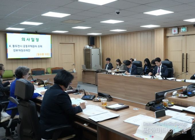 구체적으로는, 황주룡 의원 대표 발의안 ▲'동두천시 공동주택관리 조례 전부 개정조례안', 김재수 의원 대표 발의안 ▲'동두천시 자치법규 정비에 따른 일괄개정규칙안', 권영기 의원 대표 발의안 ▲'동두천시 자치법규 정비에 따른 일괄개정조례안' 및 ▲'동두천시 자율방범대 지원에 관한 조례 일부개정조례안', 박인범 의원 대표 발의안 ▲'동두천시의회 직장 내 괴롭힘 금지에 관한 조례안', 임현숙 의원 대표 발의안 ▲'동두천시 이동노동자 쉼터 설치 및 운영 조례안'과 이은경 의원 대표 발의안 ▲'동두천시의회 지방공무원 복무조례 일부개정조례안' 을 검토했다. 또한 집행부에서 제출한 ▲'동두천시 위원회 실비변상 조례 폐지조례안'등 15개 조례안 및 사업 진행 사항에 대하여도 집행부 관계자들의 설명을 듣고 심도 있게 논의하는 자리를 가졌다.