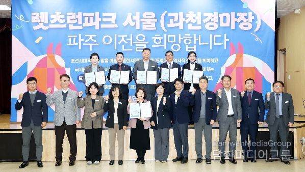 시민행정신문 강갑수 기자 | 파주시는 지난 31일 파주시농업기술센터 농업과학교육관 3층에서 ‘렛츠런파크 서울(과천경마장) 유치 서명식’을 개최했다.