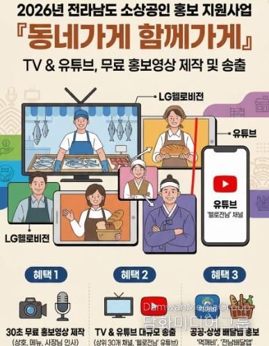시민행정신문 강갑수 기자 | 강진군이 고물가와 경기 침체로 어려움을 겪는 관내 소상공인을 위해 홍보영상 제작부터 티비 광고 송출까지 원스톱으로 지원하는 ‘2026년 동네가게 함께가게 홍보 지원사업’ 대상자를 모집한다.