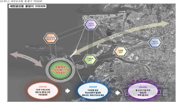 새만금 제2호 방조제를 통해 연접된 스마트 수변도시는 2028년 주민 입주 시기에 맞춰 항만과 연계해 스마트 물류 유통 및 크루즈 관광, 수변도시 기능과 부합되는 주요 공공기관 유치, 주민들의 문화 시설, 국제교류 기능 강화를 위한 글로벌 중심지로 계획되어 조성되고 있어, 새만금신항과 배후도시의 결합 구조는 더욱 명확해지고 있다.