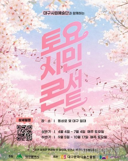 시민행정신문 기자 | 대구광역시는 시민들의 일상 속 문화예술 향유 기회를 확대하고 도심에 활력을 불어넣기 위해 오는 4월 4일 오후 7시, 수성못 수상무대에서 ‘2026 토요시민콘서트’의 막을 올린다.