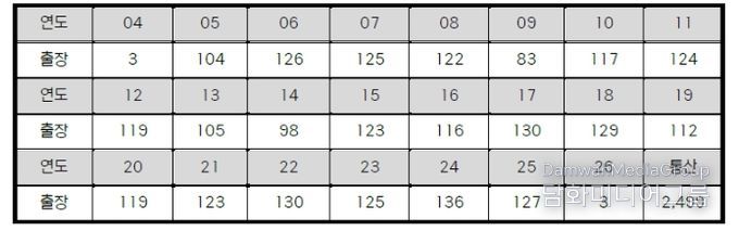 3월 31일 기준 통산 출장 경기 수 10위 이내의 선수 중 강민호가 유일한 포수로 이름을 올리고 있다. 포수 포지션에도 불구하고, 철저한 자기관리로 23년차인 지금까지 단 3시즌을 제외하고 모두 100경기 이상 출장하며 꾸준함을 보여줬다.