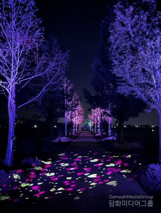 시는 약 400m에 이르는 메타세과이어 사이 형형색색 점등이 가능한 LED 조명을 설치해 어둠 속에서 나무에 반사되는 신비롭고 생동감 있는 빛의 파노라마 터널을 선사한다.