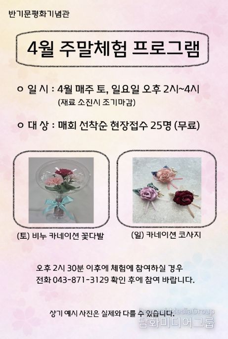 시민행정신문 강갑수 기자 | 음성군 제8대 유엔사무총장 반기문 평화기념관에서는 관람객을 위한 4월 주말 무료 체험 프로그램을 운영한다.