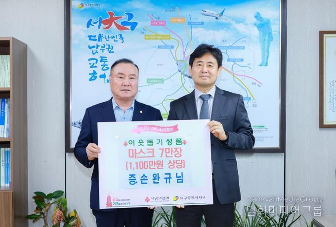 류한국 서구청장은 “고유가 등 어려운 시기임에도 나눔을 실천해 주신 손완규 대표에게 진심으로 감사드리며, 전달해 주신 물품은 필요한 곳에 잘 전달하겠다.”라고 전했다.