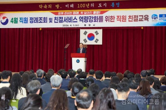 시민행정신문 강갑수 기자 | 통영시는 지난 1일 시청 강당에서 4월 직원 정례조회를 열고, 주요 현안의 차질 없는 추진과 시민 안전, 민생 안정을 위한 행정 대응 방향을 공유했다.