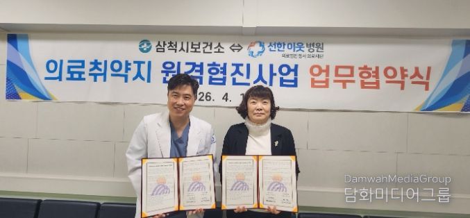 시민행정신문 기자 | 삼척시보건소는 4월 1일 보건소 회의실에서 선한이웃병원(병원장 권석호)과 '의료취약지 원격협진사업 추진을 위한 업무협약(MOU)'을 체결했다고 밝혔다.
