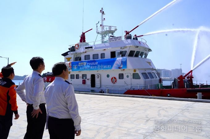 일정 첫 순서로 소방정대를 방문해 전남 해상을 관할하는 소방정 '전남705호'에 승선, 방수포 시연을 참관하고 선박 가동 상태를 직접 살폈다. 24시간 출동 태세를 유지 중인 현장 대원들의 노고를 격려하며 빈틈없는 화재·구조·구급 대응 체계 유지를 당부했다.