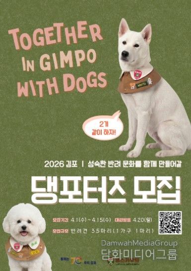 시민행정신문 강갑수 기자 | 김포시는 올바르고 책임 있는 반려문화 확산을 이끌 ‘김포 댕포터즈’를 모집한다고 밝혔다.