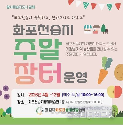 시 관계자는 “이번 주말장터 운영이 지역 농산물 소비 촉진과 함께 화포천습지 방문객 편의 증진에 기여하고, 나아가 생태관광 활성화로 이어지기를 기대한다”고 밝혔다.