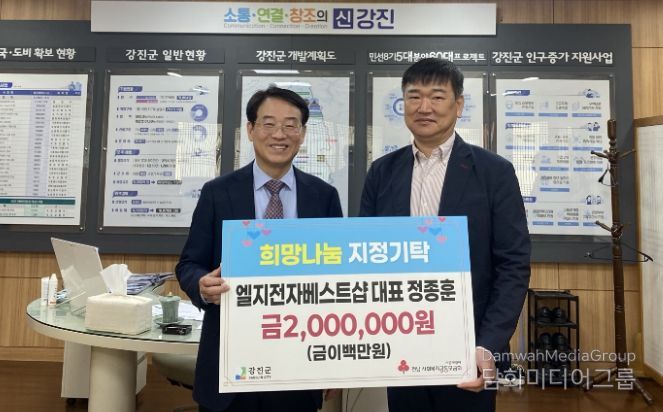 이번에 기탁된 성금 200만 원은 전남사회복지공동모금회를 통해 지정기탁 처리된 후, 강진군 저소득 지역주민을 위한 사회복지 사업에 사용될 예정이다.