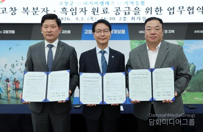 시민행정신문 강갑수 기자 | 고창군이 지난 2일 오후 군청2층 회의실에서 고창군·㈜지비엠에스·지역농협 5개소와 ‘고창 복분자·흑임자 원료 공급 및 상생발전 업무협약(MOU)’을 체결했다.