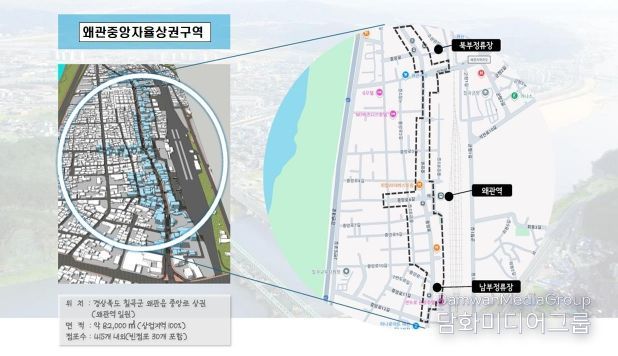 시민행정신문 이세훈 기자 | 칠곡군 왜관읍의 중심 상권이 지역상권 활성화를 위한 새로운 전기를 맞이했다. 칠곡군은 지난 3월 31일자로 왜관 원도심 일대가 ‘자율상권구역’으로 최종 지정됐다고 밝혔다.