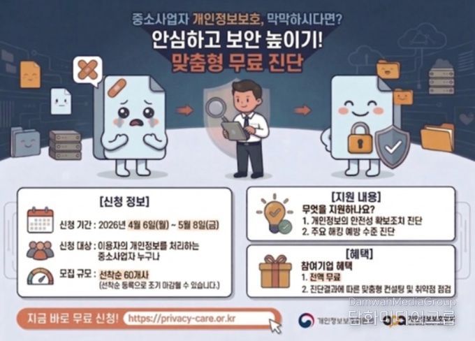 시민행정신문 이존영 기자 | 개인정보보호위원회는 중소·영세사업자의 개인정보 보호수준을 높이고 유출사고를 사전 예방하기 위해 4월 6일부터 5월 8일까지 ‘중소사업자 안전조치 모니터링’ 시범사업 참여기업을 모집한다.