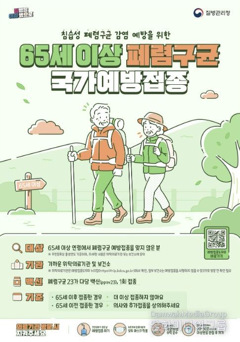 보건소 관계자는 “폐렴은 국내 주요 사망 원인 중 하나로, 예방접종이 감염 예방과 중증으로의 진행을 막는 가장 효과적인 방법”이라며 “아직 접종하지 않은 어르신께서는 가까운 의료기관을 방문해 예방접종을 받으시기 바란다”고당부했다.