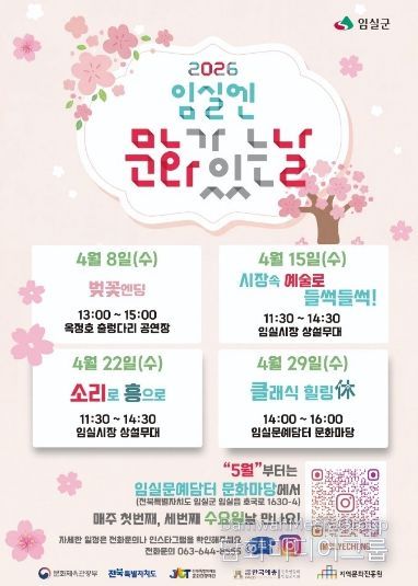 시민행정신문 강갑수 기자 | 임실군 이 문화체육관광부와 지역문화진흥원이 주관하고 전북특별자치도 문화관광재단이 공모한 ‘2026 구석구석 문화가 있는 날’ 사업에 최종 선정 되어, 4월 8일부터 본격적인 행사를 시작한다.