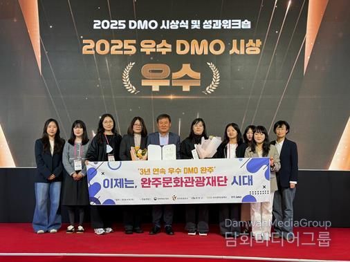 전북 완주군의 지역관광추진조직(DMO)과 완주문화관광재단은 2023년‘우수’, 2024년‘최우수’, 2025년 ‘우수’로 선정되어 3년 연속 꾸준한 성과를 인정받으며 지역 관광 활성화의 기반을 공고히 하고 있다.