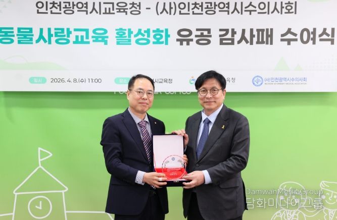 시민행정신문 조규호 기자 | 인천광역시교육청은 8일 인천광역시수의사회(회장 오보현)로부터 ‘학교로 찾아가는 동물사랑교육’ 활성화에 기여한 공로로 감사패를 전달받았다.