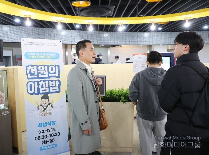 김진태 지사는 이날 대학 아침밥 식단 구성과 학생 만족도 등을 직접 확인하고, ‘천원의 아침밥’ 사업 홍보 현황도 함께 점검했다.