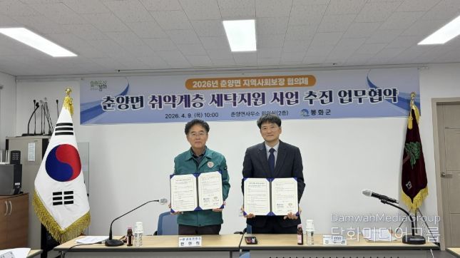 시민행정신문 강갑수 기자 | 봉화군 춘양면은 4월 9일 춘양면사무소 2층 회의실에서 2026 춘양면 취약계층 세탁지원 사업 업무 협약을 체결했다.