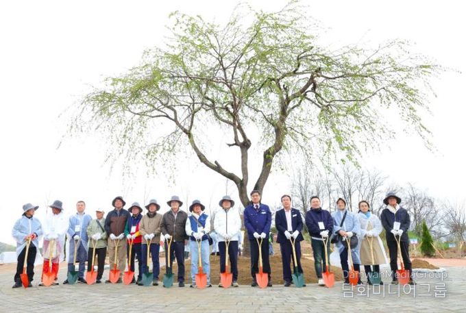 특히 본격적인 나무심기에 앞서 진행된 감사패 전달식에서는 재일본대한민국민단 고(故) 박병헌 단장(2021년 작고)의 공로를 기리며 아들 박상규 씨(한일친선협의중앙회 이사)에게 감사패가 전달됐다.