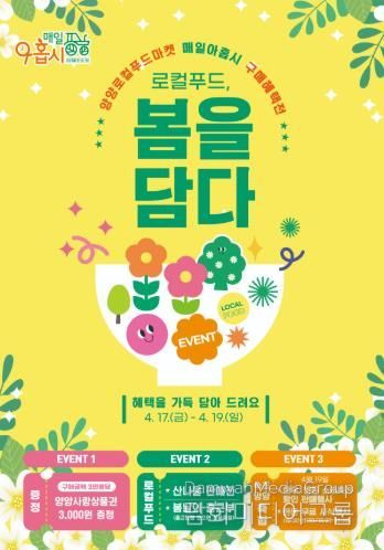 시민행정신문 강갑수 기자 | 양양군이 오는 4월 17일부터 19일까지 3일간 양양 웰컴센터 2층 ‘매일아홉시’ 로컬푸드마켓에서 봄맞이 판매행사 '로컬푸드, 봄을 담다 - 매일아홉시 구매혜택전'을 개최한다.