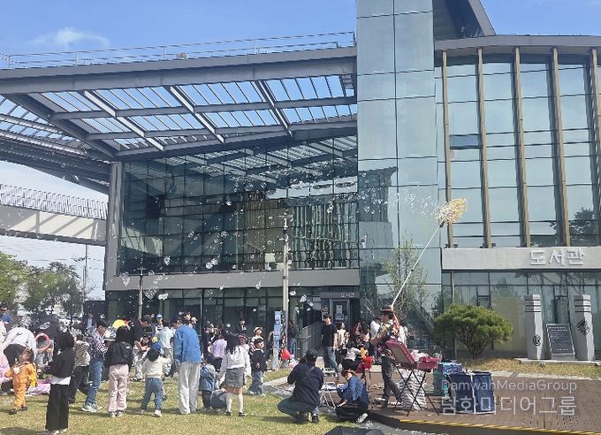 이날 행사에서는 잔디마당에서 진행된 ‘곰돌이푸 버블맨과 함께하는 버블쇼’가 큰 호응을 얻으며 아이들과 가족 단위 방문객들의 발길을 사로잡았다. 햇빛에 비친 형형색색의 비눗방울이 맑은 하늘을 수놓으며 도서관 앞마당은 웃음과 환호로 가득 찼다.