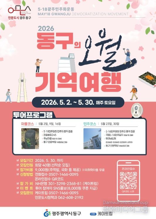 시민행정신문 강갑수 기자 | 광주 동구는 제46주년 5·18민주화운동을 기념해 5월 한 달 동안 기념 투어 프로그램인 ‘동구의 오월 기억여행’을 운영한다고 밝혔다.