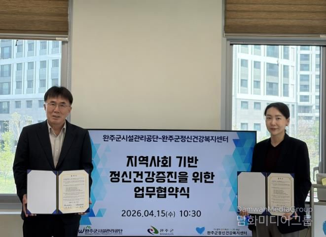 시민행정신문 강갑수 기자 | 완주군시설관리공단이 지난 15일 완주군정신건강복지센터와 ‘정신건강 증진을 위한 업무협약’을 체결했다.