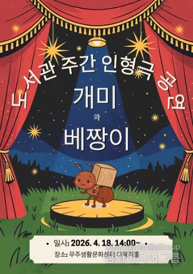 시민행정신문 강갑수 기자 | 무주군이 도서관 주간(4.12.~18.)을 맞아 4월 18일 오후 2시부터 무주생활문화센터 다목적홀(지하 1층)에서 ‘배려와 존중’을 주제로 한 인형극 ‘개미와 베짱이’를 개최한다고 밝혔다.